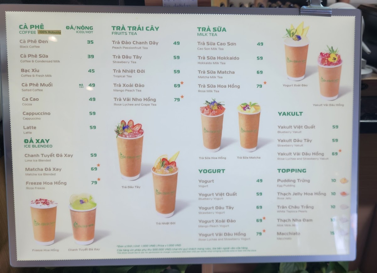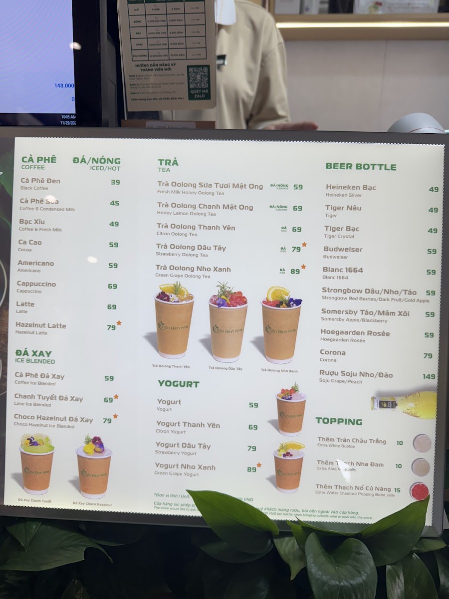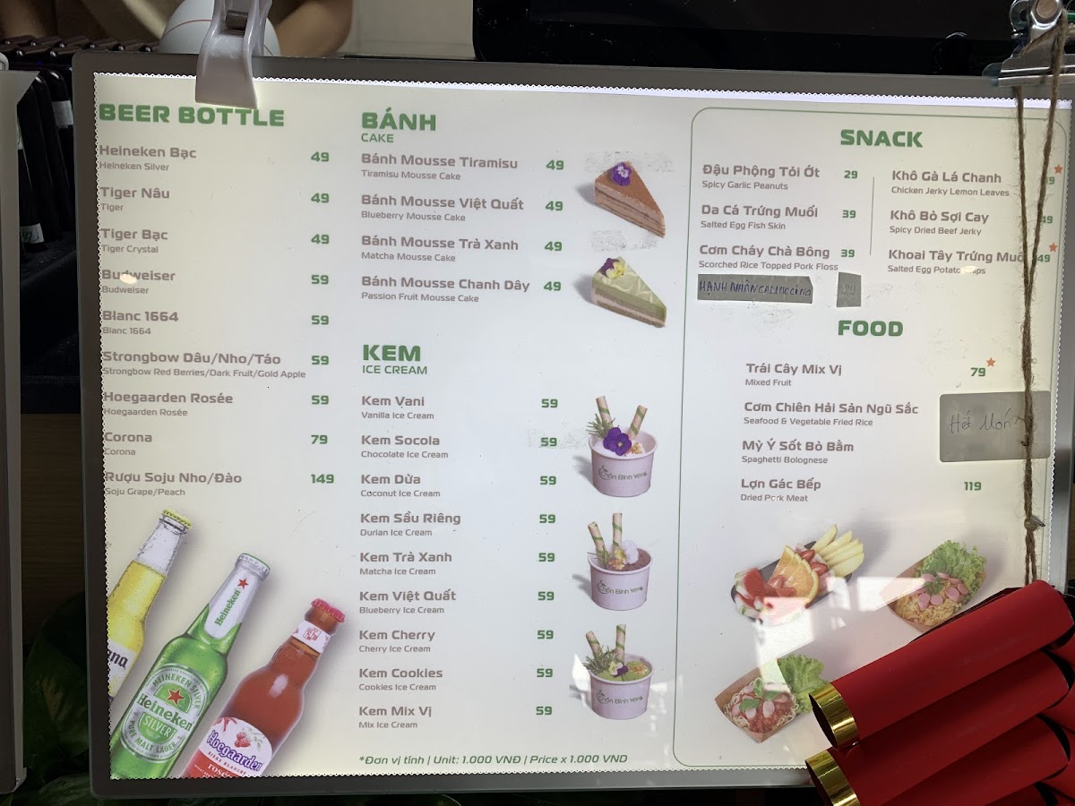 The menu at Chốn Bình Yên Coffee offers a simple yet thoughtful selection of drinks designed to complement its tranquil rooftop setting. Expect comforting beverages that suit quiet mornings, leisurely afternoons, or gentle evening moments while taking in the broad views of Nha Trang’s cityscape and coastline.